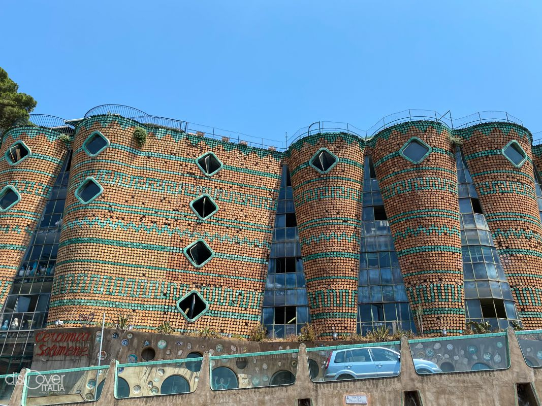 La grande sirena dell’artista Luigi Manzo dà il benvenuto a Vietri, la città che della ceramica ha fatto il suo elemento distintivo.