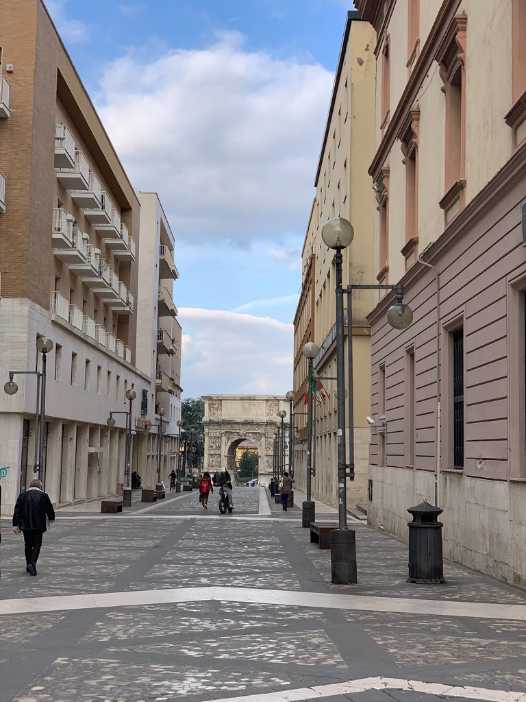 Dal corso ci si immette in via Traiano, aperta dopo il secondo dopoguerra proprio per valorizzare sullo sfondo il magnifico Arco di Traiano, simbolo di Benevento.